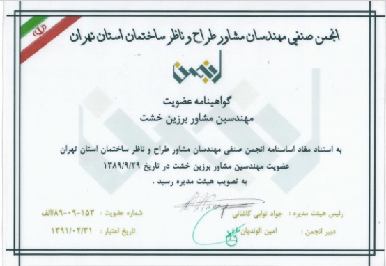 هلدینگ ساختمانی خشت با اتکا به تجربه، تخصص و پشتوانه مهندسان توانمند خود، موفق به اخذ گواهینامههای صلاحیت خدمات مشاوره در زمینههای مختلف عمرانی شده است. این گواهینامهها نشانگر توانایی ما در ارائه مشاورههای فنی، مدیریتی و اجرایی در پروژههای بزرگ و تخصصی هستند.