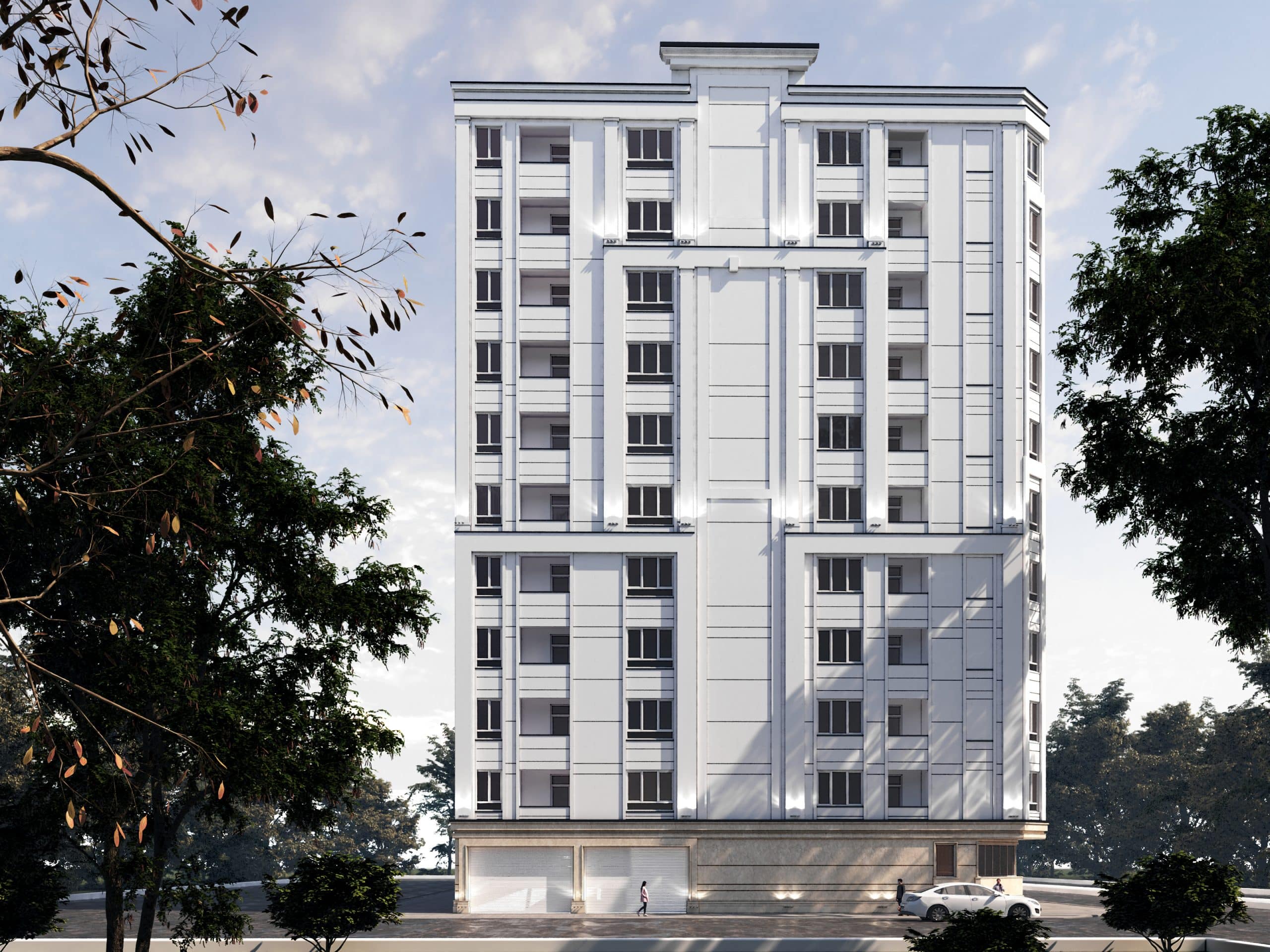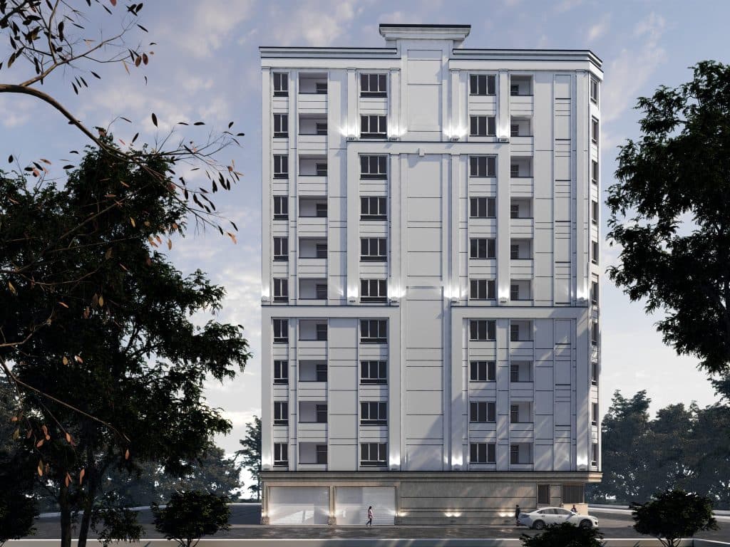 3 طبقه برای تامین پارکینگ، ۱ طبقه برای احداث لابی و تامین پارکینگ، ۱۰ طبقه مسکونی