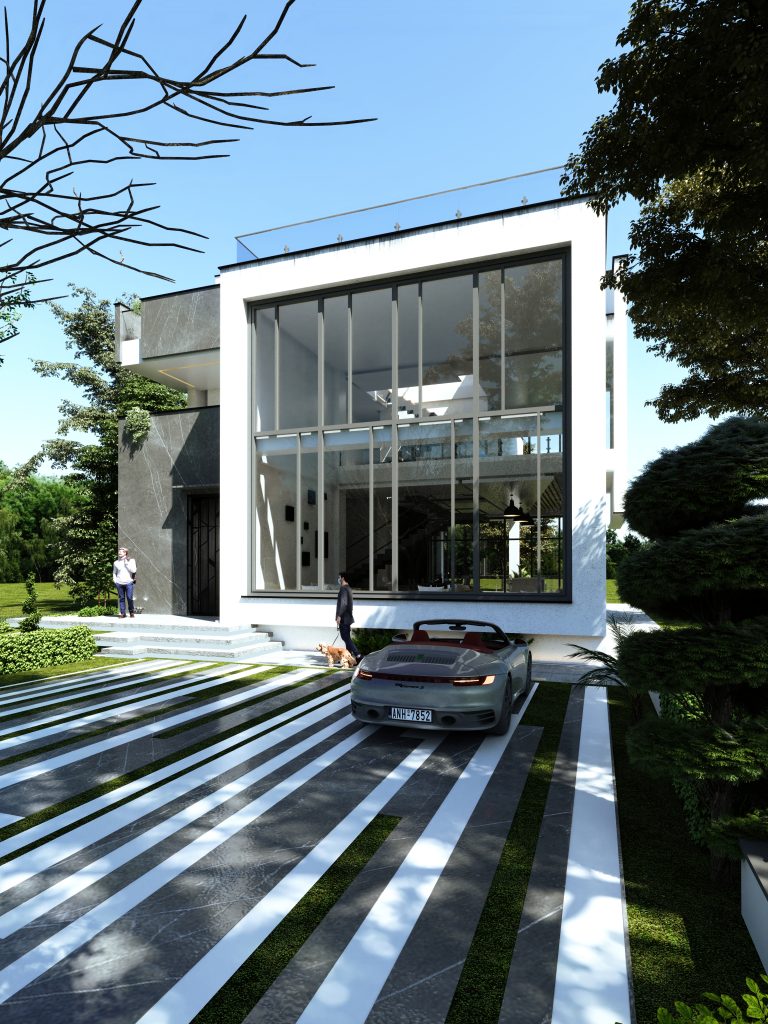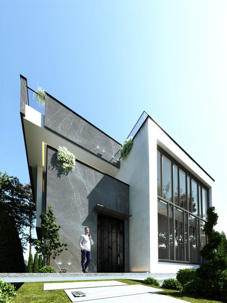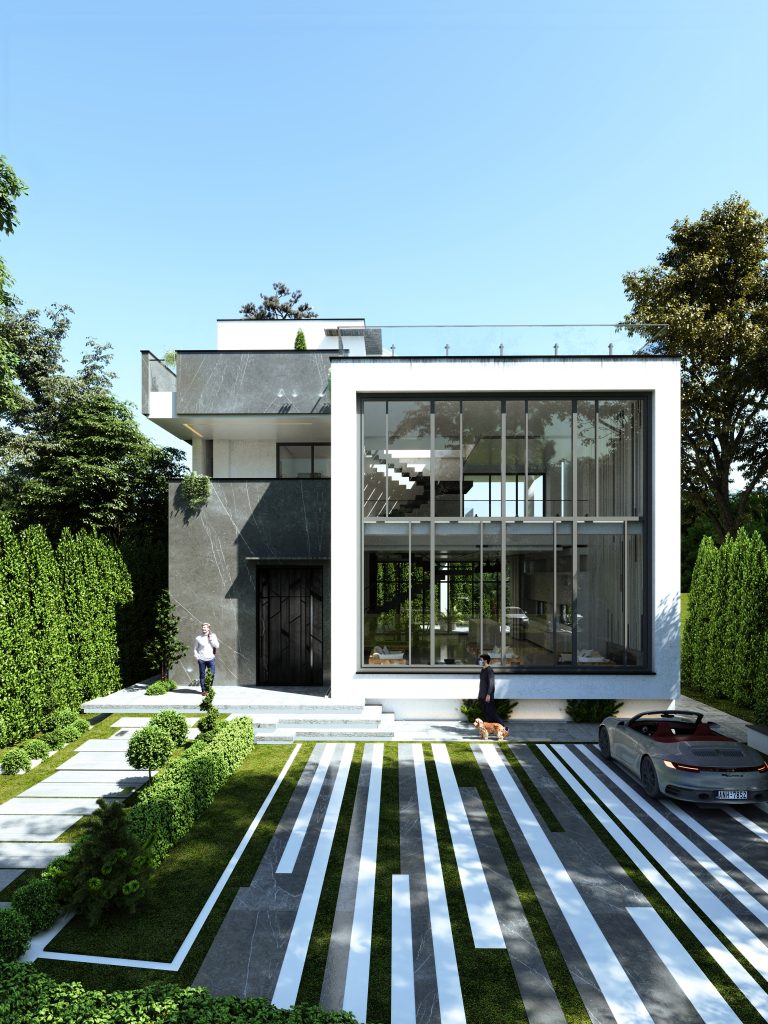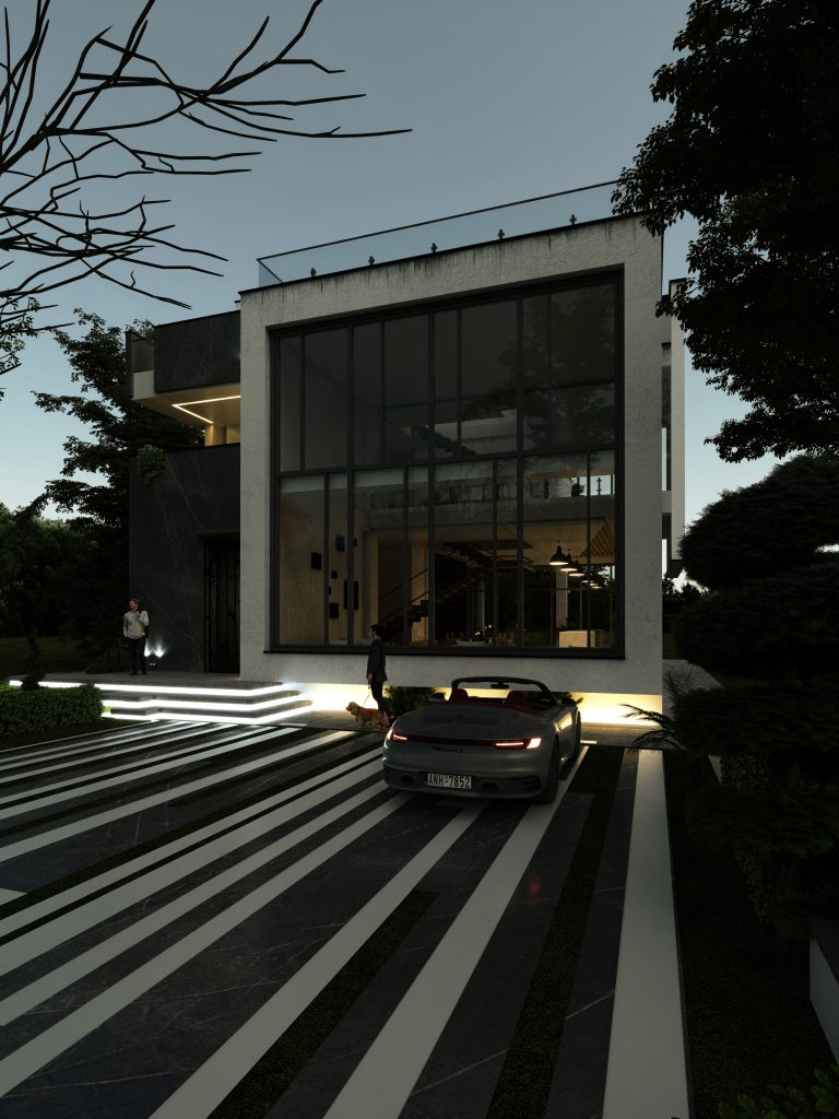 ترکیب متریال مدرن: استفاده از سنگ، سیمان و شیشه در نما، جلوهای معاصر و شفاف ایجاد میکند.