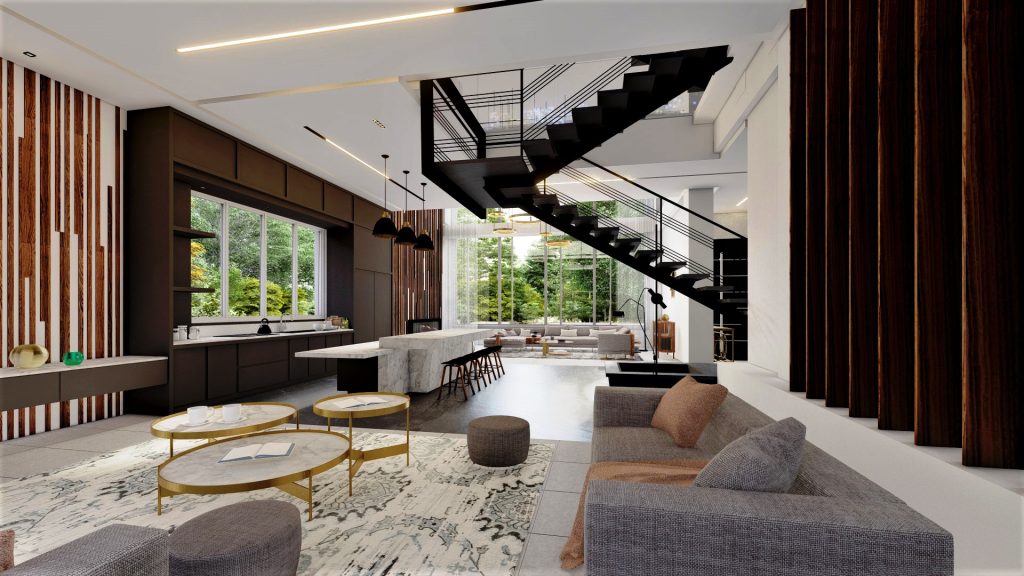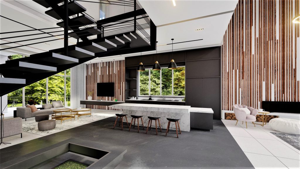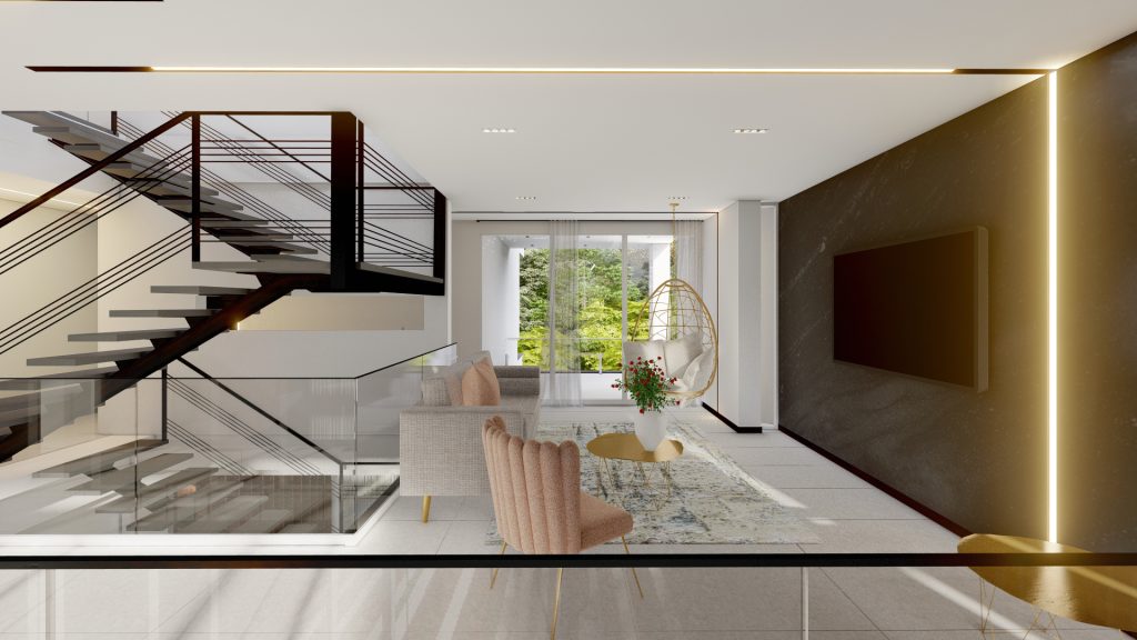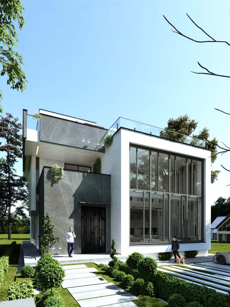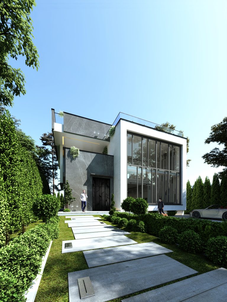 ترکیب متریال مدرن: استفاده از سنگ، سیمان و شیشه در نما، جلوهای معاصر و شفاف ایجاد میکند.